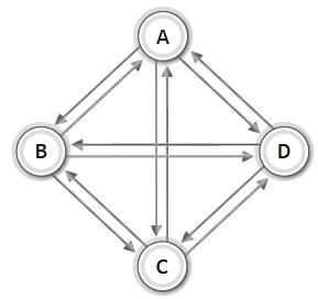 그래프 G3의 정점 집합 V(G3) = {A, B, C, D}