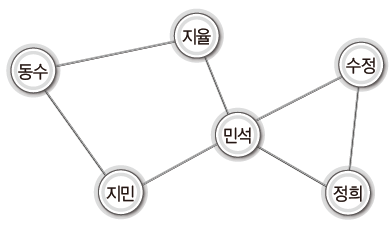 그러면 '정점'은 각 학생들의 이름이 되고 학생들 사이의 선, 정점 사이의 연결을 '간선'이라고 한다.